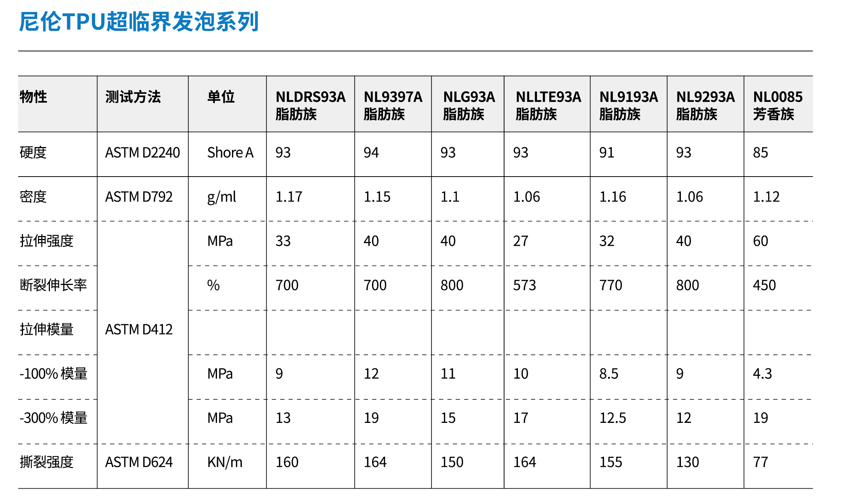 尼伦化学TPU(热塑性聚氨酯弹性体)凭借其优异的弹性、耐磨性和耐化学性,通过超临界物理发泡技术,将TPU材料转化为轻量化、高回弹的闭孔微发泡材料,突破传统发泡工艺的局限,实现性能与环保的双重升级,成为高端材料领域的明星。