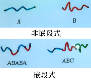• EVA 嵌段式:由两个或更多的不同性质的聚合物段通过化学键连接而成。